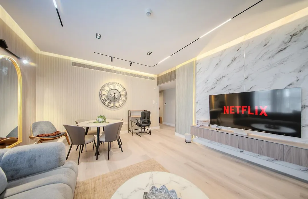 A 2Br Private Apartment In Al Zahia, Sharjah - Stone Haven vendégei számára tornácot, erkélyt és öltözőt biztosít, valamint olyan modern kényelmeket, mint a klímaberendezés. Az apartman a kényelem fokozása érdekében bidét, külön WC-t és zuhanyzót biztosít. A fürdőszobában szárító, törölközők és papucsok is biztosított.